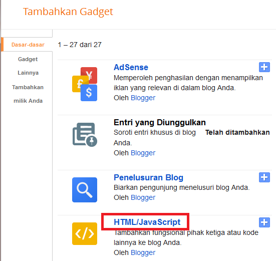 bisa dengan menggunakan widget otomatis bawaan blogger dan dengan menggunakan kode HTML.